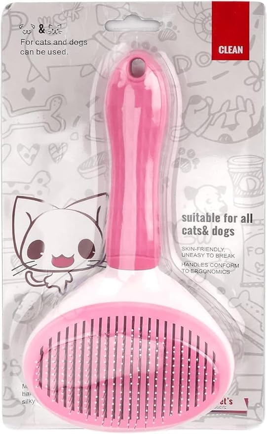 Massaging and Deshedding Slicker Brush for Pet Grooming - All Hair Types (Pink)
