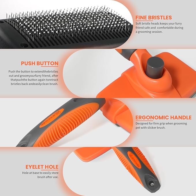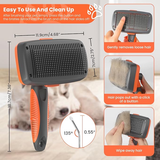 - Effortless Pet Grooming: Experience hassle-free grooming with our self-cleaning slicker brush, designed for both dogs and cats, making grooming sessions a breeze.
