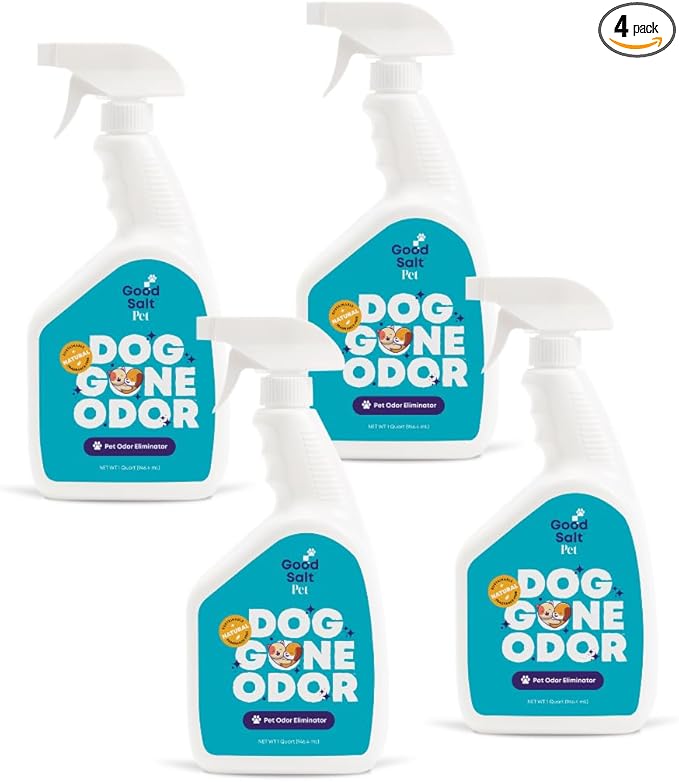 Good Salt Pet Dog Gone Odor, Natural & Fragrance Free Scent Neutralizer Spray, Made in the USA, 32 Ounce Bottle, 4-Pack