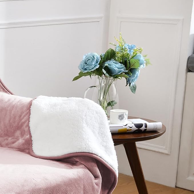 Waterproof Blanket for Bed Couch Sofa, Soft Liquid Pee Proof Pet Blanket for Dog Puppy Cat, Reversible Sherpa Fleece Blanket for Furniture Protector (Dusty Pink, 30x40 inches)