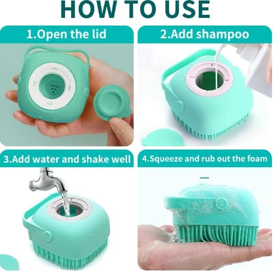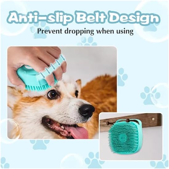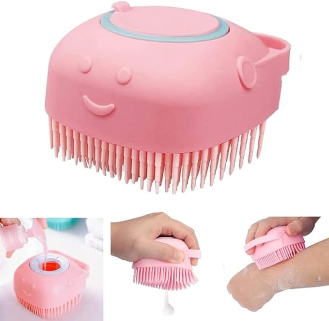 S.K PRODUCTION Pet Grooming Bath Massage Brush Scrubber with Shampoo and Soap Despenser Soft Silicone Bristle for Long Short Haired Cats Dogs Shower (Pink)