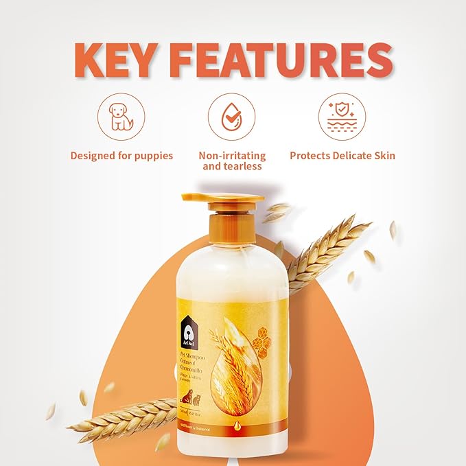 - Natural Plant-Based Ingredients – Enriched with nourishing ingredients such as Matricaria Flower Extract, Triticum Vulgare (Wheat) Germ Oil, oatmeal, and honey, this dog shampoo provides gentle cleansing and hydration. It effectively relieves itchiness and supports healthy skin and coat for your puppy or kitten. It is free of parabens, and other harmful chemicals, making it gentle and non-irritating, perfect for puppies and dogs with sensitive skin. Give your pet the most natural care with confidence.