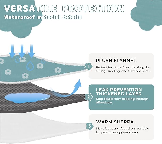- Waterproof & Leakproof Blanket: Our waterproof dog blanket features an internal lining that provides excellent defense against liquids, ensuring your pet and furniture remain dry and clean. Ideal for dogs, cats, and kittens, this pet blanket is perfect for both indoor and outdoor use, guaranteeing your pet's comfort when use this cute blanket.