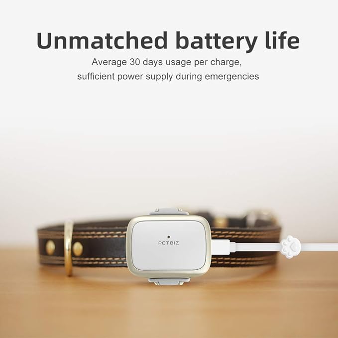 G1-US GPS Pet Tracker, 30 Days Ultra Long-Lasting Battery Lightweight Waterproof pet Finder (White) (Black)