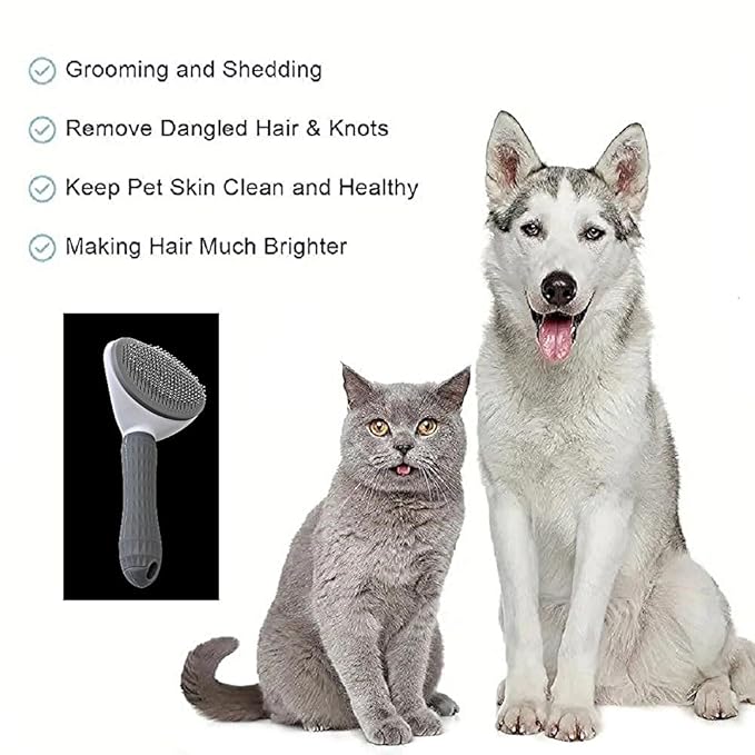 Pet Grooming Brush For Cats & Dogs Self-Cleaning Slicker Brush Hair Removal Comb Gentle De-shedding Grooming Tool