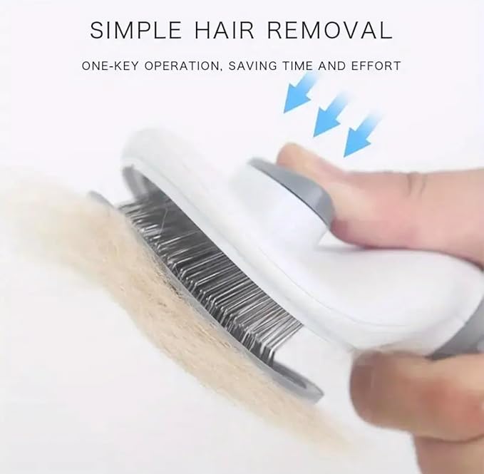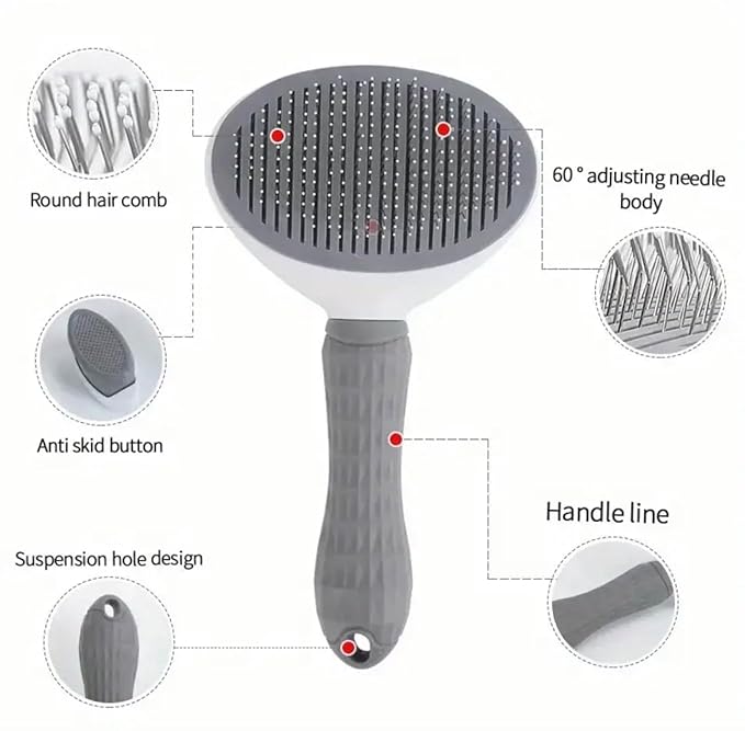 Pet Grooming Brush, Self Cleaning Pet Brush For Dogs and Cats with Release Button, Grey