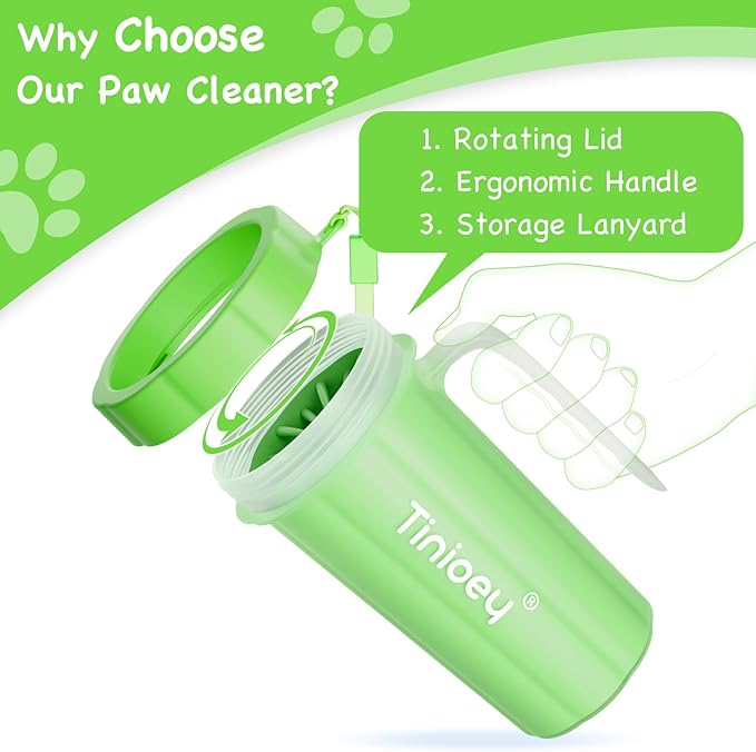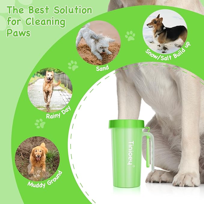 - 【Efficient Cleaning】Tinioey paw washer for large dogs with handle offers a hassle-free solution for keeping your furry friend's paws clean. The innovative design of large dog feet cleaner ensures thorough cleaning, removing dirt, mud, and other debris quickly and effectively. Compared with some dog paw cleanser foam, it is more suitable for cleaning a lot of mud on dog paws or dog legs on rainy days or after walking the dog outdoors.
