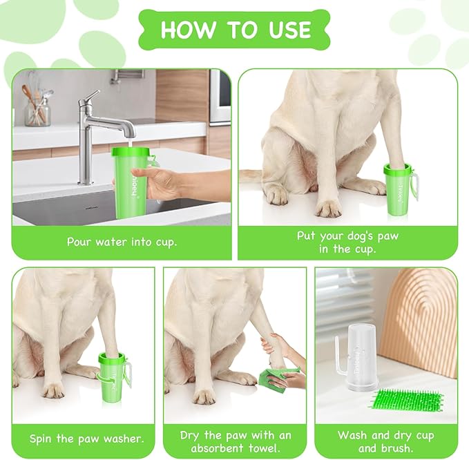 - 【Easy to Use】Designed for convenience, this puppy paw cleaner simplifies the cleaning routine. Simply add water, insert the paw, and gently twist for a few seconds to remove dirt and grime. It's a quick and efficient way to maintain cleanliness after walks or outdoor adventures.