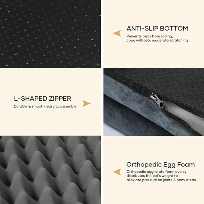 - Provides optimal support for key pressure points and relieves achy joints with an extra thick Egg Crate foam cushion, making it an ideal pet bed for pets of all ages.