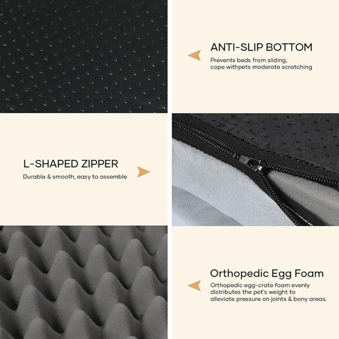 - Provides optimal support for key pressure points and relieves achy joints with an extra thick Egg Crate foam cushion, making it an ideal pet bed for pets of all ages.