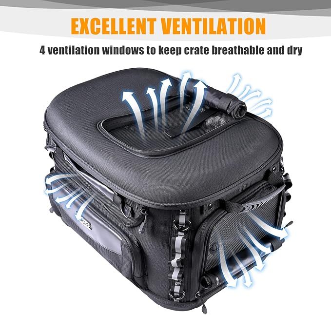 - Keep Shape & Weatheer Proof: A luxury,luggage-quality dog motorcycle carrier is made of 1680D oxford for weather-proof, not afraid of rain or snow to keeps your pup warm and dry.It also includes a rain cover for inclement weather. Plus,UV resistant fabric that can withstand the sun's exposure. The internal metal frame and a nice rigid base can keep dog carrer's shape and protect dog well while the moto pet carrier is surrounded by softside cloth to ensure your buddy won’t get hurt.