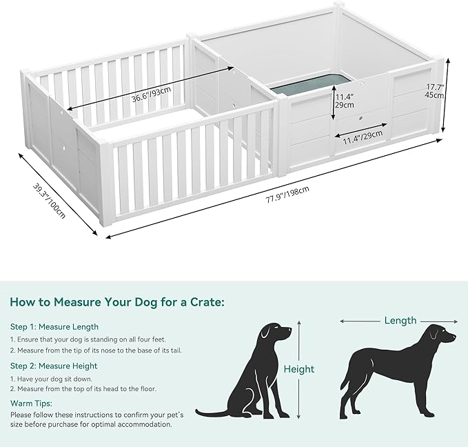- Tool-Free 5-Minute Assembly & Compact Storage:Effortlessly set up this 78"L x 39.4"W x 17.7"H whelping box in minutes without tools. Disassemble for portable storage or use as an indoor/outdoor enclosure for large breeds (Akitas, Dobermans) or small dogs (Corgis, Poodles).
