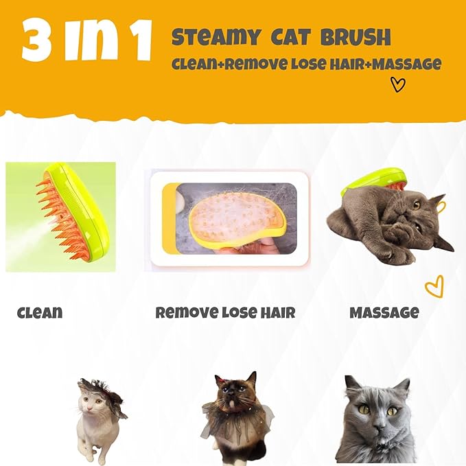 Cat Steam Brush, 3 In1 Cat Steamy Brush, Grooming Tool,Cats hair steamy Comb,Vapor Tool for cats
