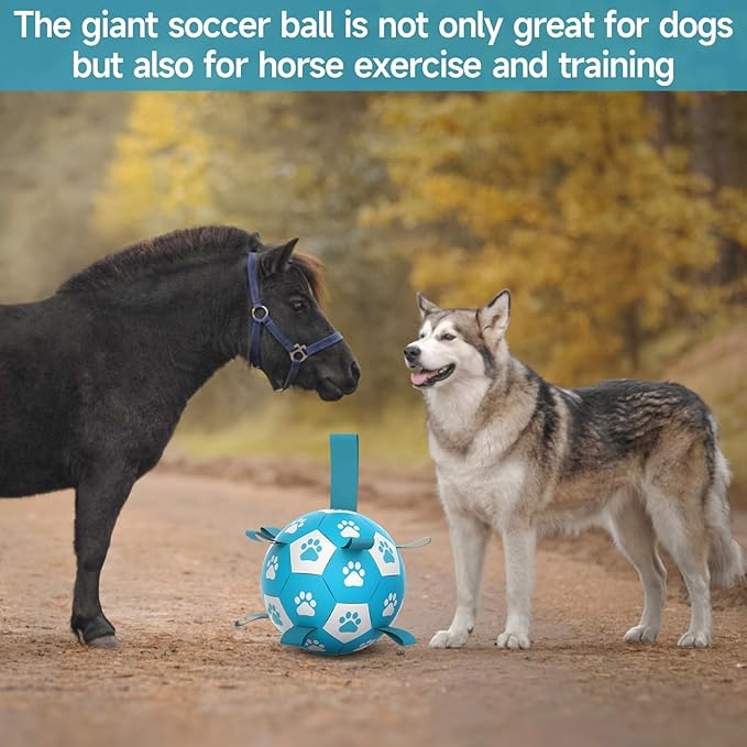 - ⚽Durable Dog Ball Toy: Complying with the exact same standard as children's toys, the dog ball is made of premium PU that is the material of standard soccer ball so that it can be kicked and bounces as well. Note, our dog soccer giant balls is suitable for above 80lbs dogs, SMALL MEDIUM PET needs to choose our small medium one.