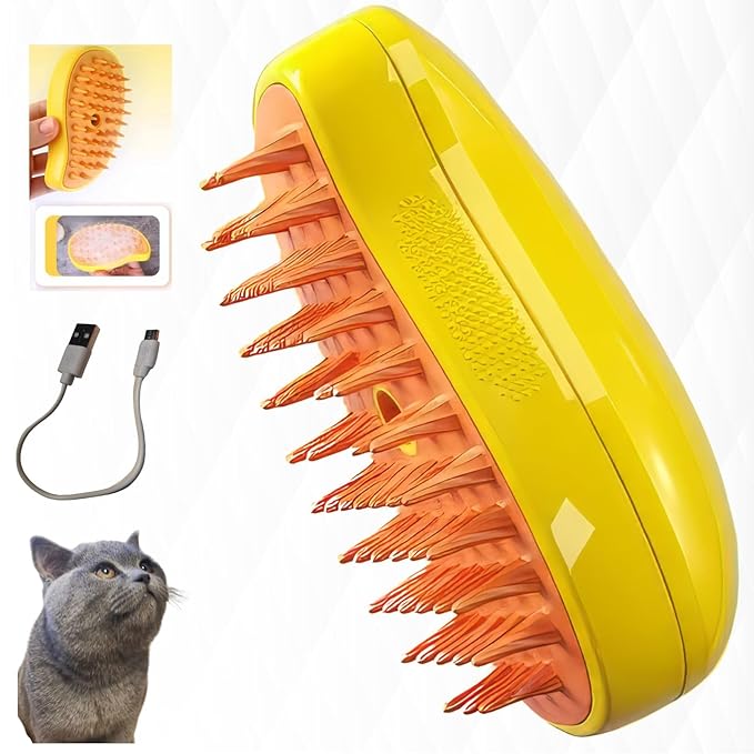 Cat Steam Brush,pet steam brush, 3 In1 Cat Grooming Tool,Cats Hair Steamer(YELLOW)