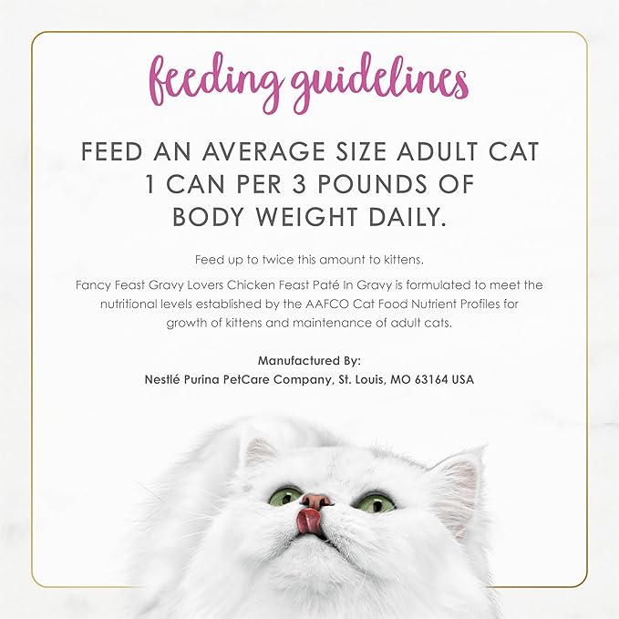 - Purina Fancy Feast cat food crafted with real chicken with no artificial preservatives or colors