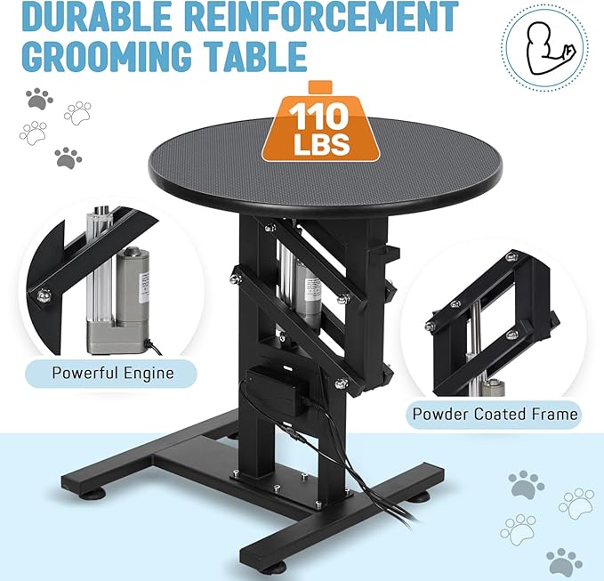 - Stable Performance: Our professional electric beauty table is equipped with a strong steel frame base, paired with a stable frame, which provides smooth, quiet and vibration-free operation, easily achieving a load capacity of 110 pounds. The adjustable table's stainless steel frame combined with reinforced grooming arms makes our trim tables stable, secure and perfect for commercial use and home grooming.