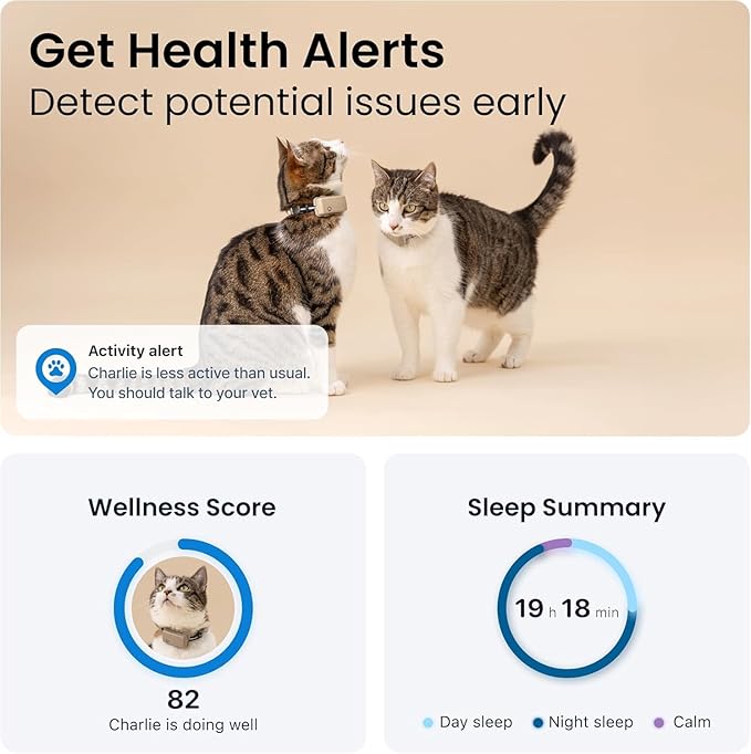 - HEALTH & ACTIVITY MONITORING: Monitor your cat's daily health, sleep patterns, and activity levels through the Tractive app, available on iOS and Android, so you can keep them in optimal shape.