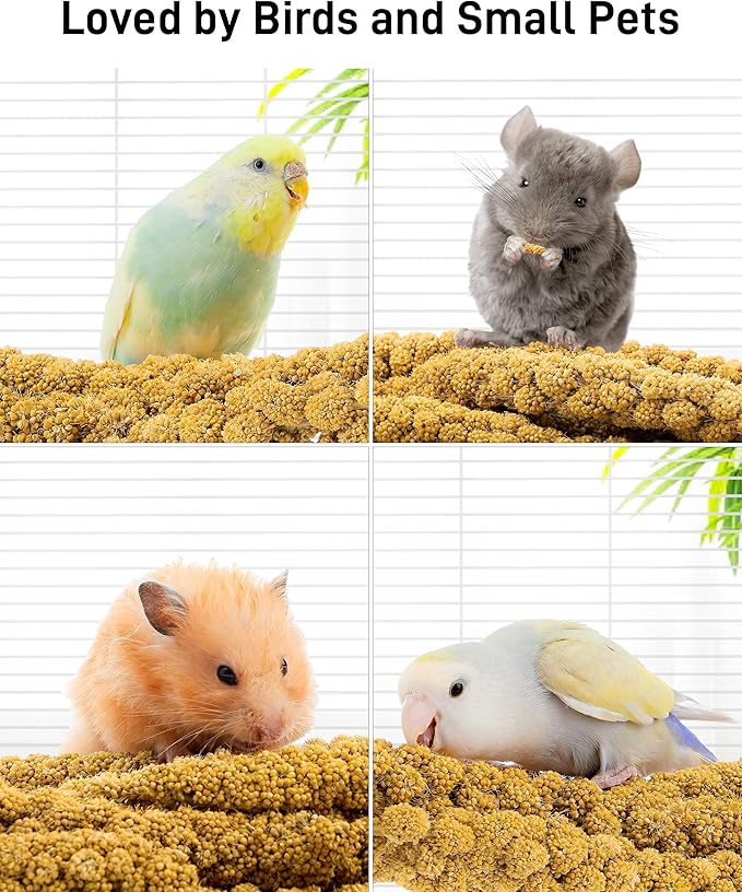 - 【1.1LB Large Quantity & Tasty Spray Millet Treats for Birds】Imagine your feathered friend’s delight with our 100% naturally grown parakeet treats! Sun-dried and hand-harvested, these plump millet grains are free of additives, preserving all their natural goodness. Perfectly delicious and packed with nutrients, these bird treats provide a burst of essential energy while keeping fat content low. Your bird will be chirping with joy!