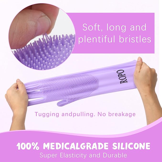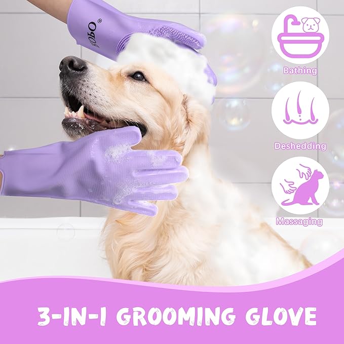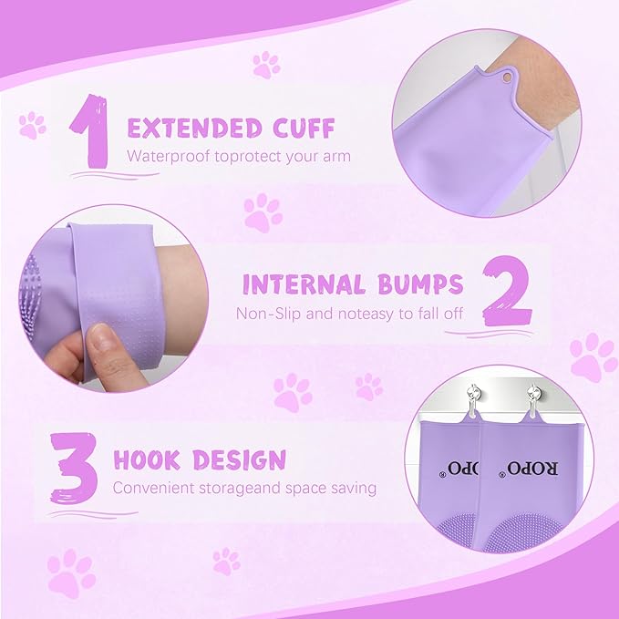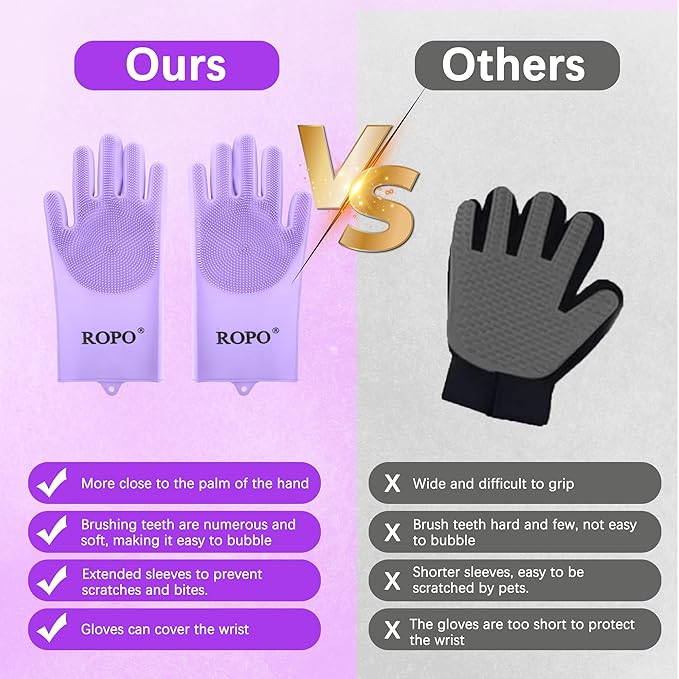 ROPO silicone gloves for pet grooming, multi-functional gloves for pet hair shedding, bathing, and massage (Purple)