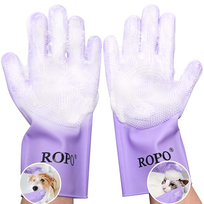 - MULTI-PURPOSE: You can take ROPO this pet bathing gloves with you when your beloved pet is taking a bath, removing loose hair while bathing, letting your pet enjoy the bath time, and can also be used to clean dishes, furniture, cars, widely used.