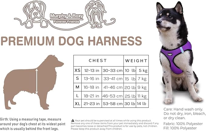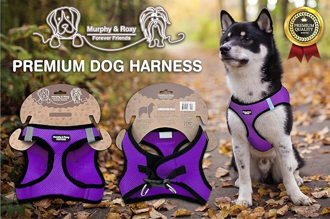 Murphy & Roxy No Pull Dog Harness for Small Sized Dogs - Heavy Duty Dog Harness with Reflective Trim - Adjustable Dog Vest Harness for Walking - Comfortable Dog Accessories for Dogs - Purple, Size S