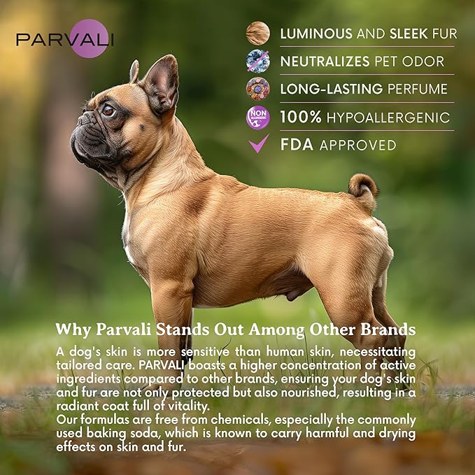 - HARMONIOUSLY NOURISHING . Immerse your beloved pet in the revitalizing embrace of a PARVALI Shampoo. Crafted with a harmonious blend of nourishing ingredients like Coconut Oil, Oats, and Honey, it's a luxurious treat for their skin and coat.