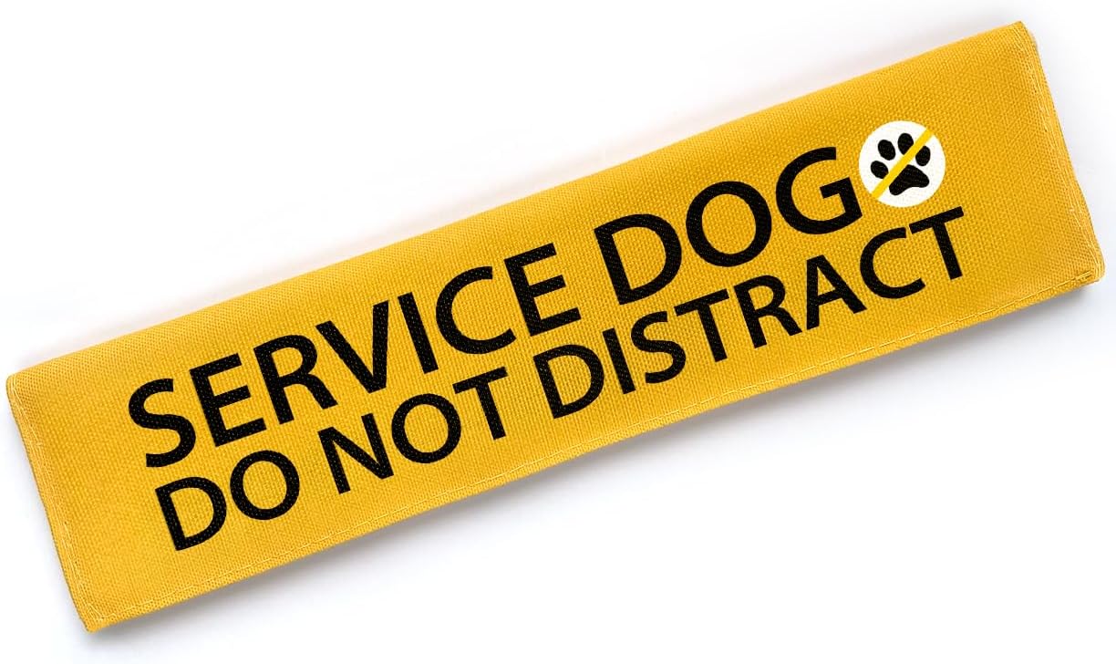 Yellow Service Dog Do Not Distract Dog Leash Sleeve, Funny Service Dog Tags Dog Leash Sleeve Wrap Alert Hanging ID Patch Tag, Pet Dog Birthday Service Dog Leash Gift for Dog Owners
