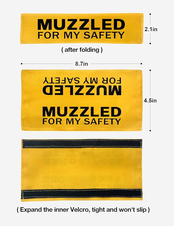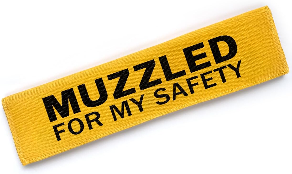 Yellow Muzzled for My Safety Dog Leash Sleeve, Funny Dog Tags Dog Leash Sleeve Wrap Alert Hanging ID Patch Tag, Pet Dog Birthday Service Dog Leash Gift for Dog Owners