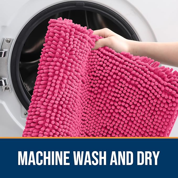 OLANLY Dog Door Mat for Muddy Paws 24x16, Absorbs Moisture and Dirt, Absorbent Non-Slip Washable Mat, Quick Dry Chenille, Mud Mat for Dogs, Entry Indoor Door Mat for Inside Floor, Hot Pink