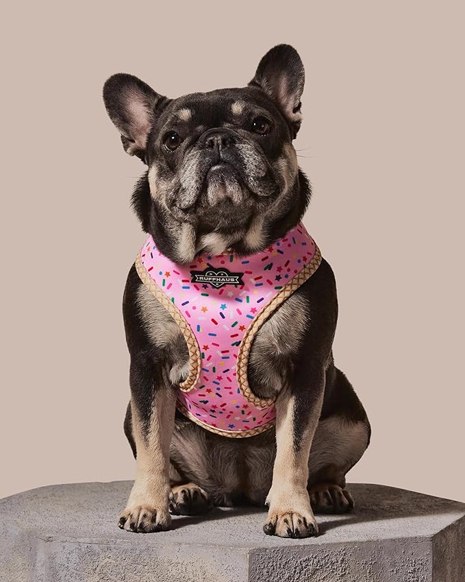 Ruffhaus NYC Pink Sprinkles Reversible Dog Harness, Ice Cream Waffle Cone, Banana Split Printed No Pull Harness Puppy Gift Girl Dog Birthday & Gotcha Day Large