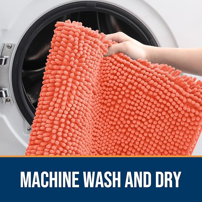 OLANLY Dog Door Mat for Muddy Paws 30x20, Absorbs Moisture and Dirt, Absorbent Non-Slip Washable Mat, Quick Dry Chenille, Mud Mat for Dogs, Entry Indoor Door Mat for Inside Floor, Coral