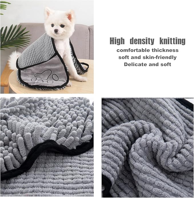 - ✅ SOFT & EASY TO DRY: The drying towel has convenient pockets on both sides for better grip to dry and massage your pet's legs and tummy, making drying faster and easier! The chenille towel has a loop in the center and can be easily hung anywhere. The dry towel set for dogs is soft and comfortable to the touch, making it a must-have for dog owners.