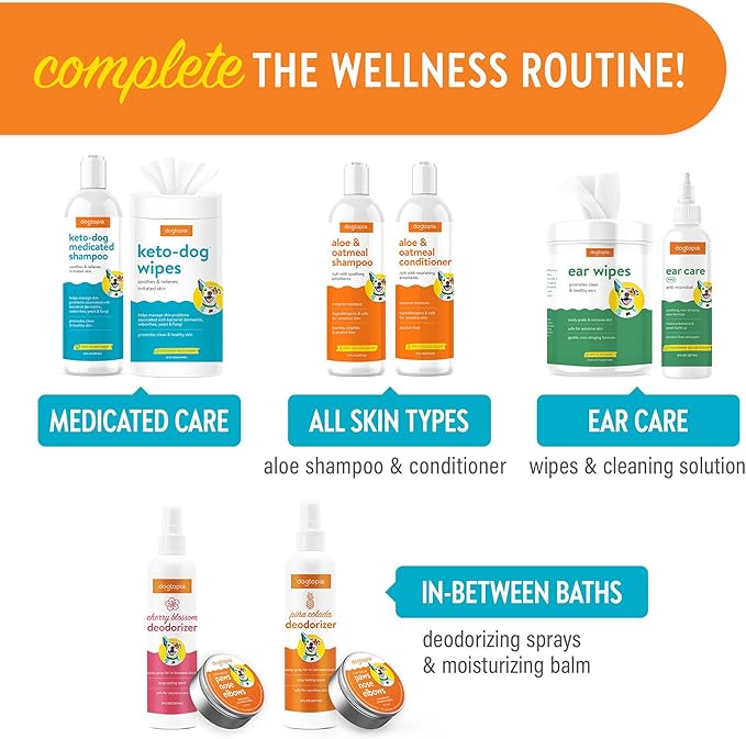 - Dogtopia’s Keto-Dog Medicated Shampoo and Keto-Dog Wipes are expertly crafted to help manage skin problems associated with irritation, hot spots, and inflammation.