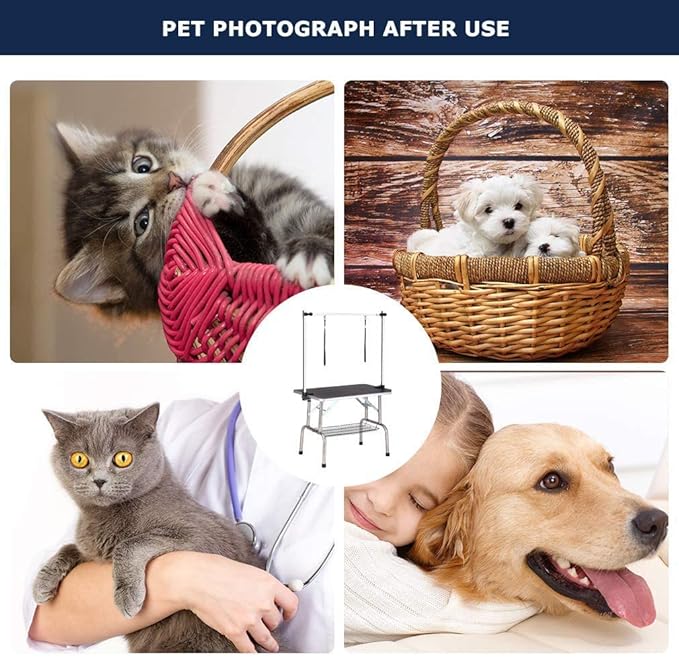 - THOUGHTFUL DETAILS: The grooming table for dogs at home includes a storage basket for keeping grooming tools organized, combining functionality with aesthetics to provide pets with a comfortable and safe grooming experience.
