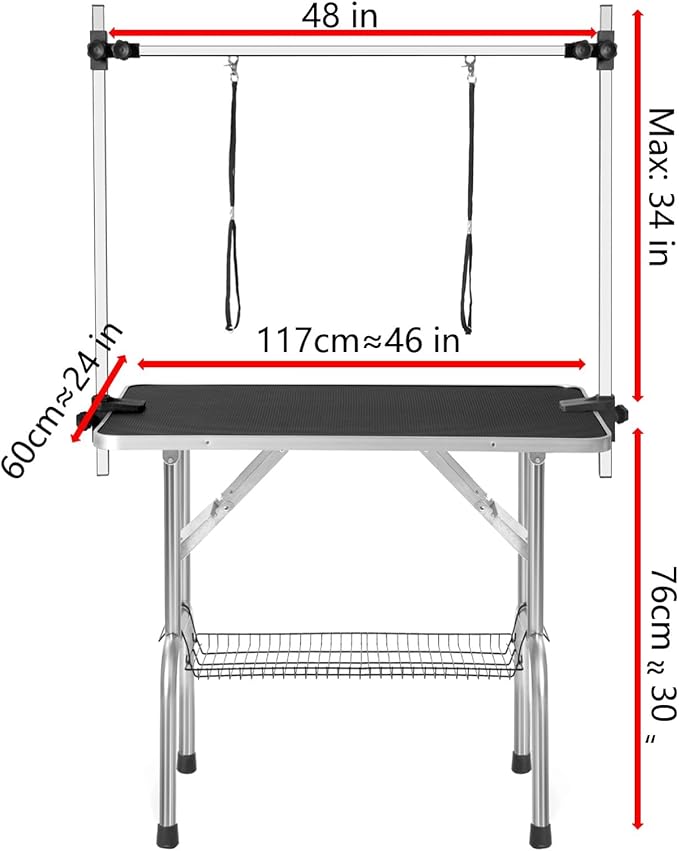 - THOUGHTFUL DETAILS: The grooming table for dogs at home includes a storage basket for keeping grooming tools organized, combining functionality with aesthetics to provide pets with a comfortable and safe grooming experience.
