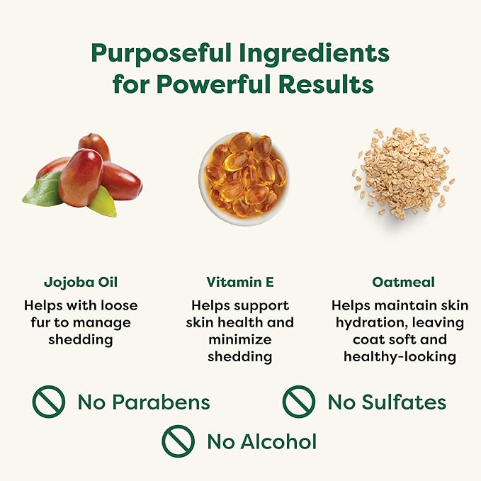 - DESHEDDING FORMULA FOR EFFORTLESS BRUSHING: Powered by jojoba oil, this dog conditioner and deshedding dog shampoo helps control shedding while restoring softness. Ideal for breeds with shedding coats like German Shepherds, Pomeranians, Corgis, and Huskies