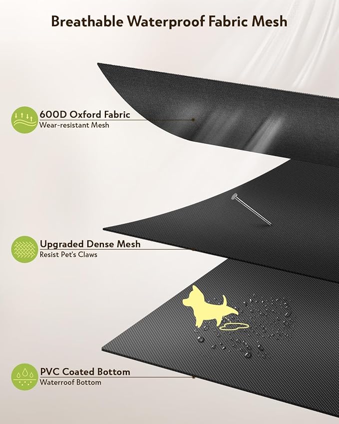 - STURDY VERSATILE :Pet playpen is composed of upgrade dense mesh and 600D Oxford fabric which is scratch-resistant and stable.The bottom of the dog playpen is water-resistant.You can also put a blanket underneath in case of getting dirty or wiping spills.Suitable for small animals such as puppy, kitten, dog, cat, bunny rabbit, chicken, ferret,and even a hamster(Not suitable for pets with excessive teething or destructive chewing behavior.)