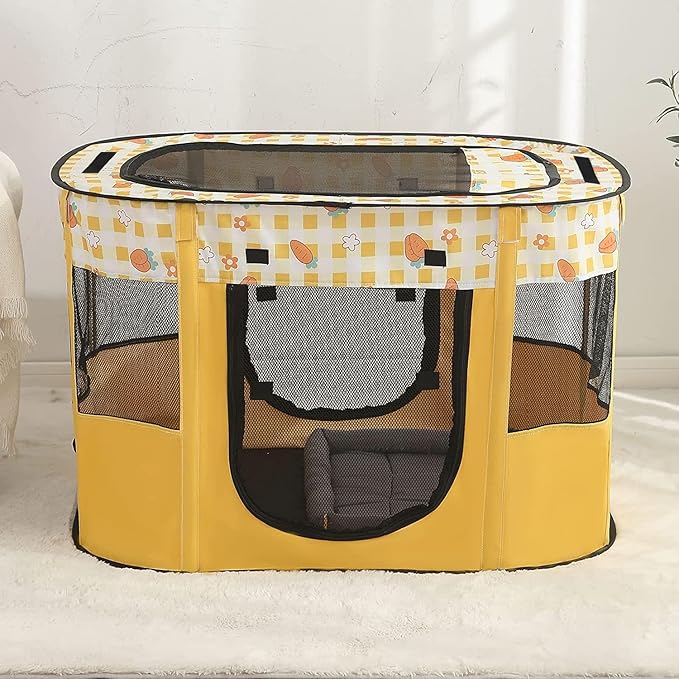 Puppy Playpen, Portable Dog Play Pen, Sturdy Cat Playpen, Foldable pop up pet Tent, Pet Playground Indoor/Outdoo (Yellow, Large)