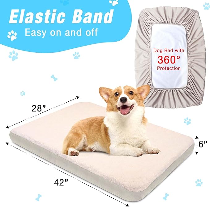 Dog Bed Covers Replacement Washable 100% Waterproof Dog Bed Cover 2 Pack Soft Noiseless Dog Bed Sheets for Dog Bed/pet Bed, 42" x 28" Beige