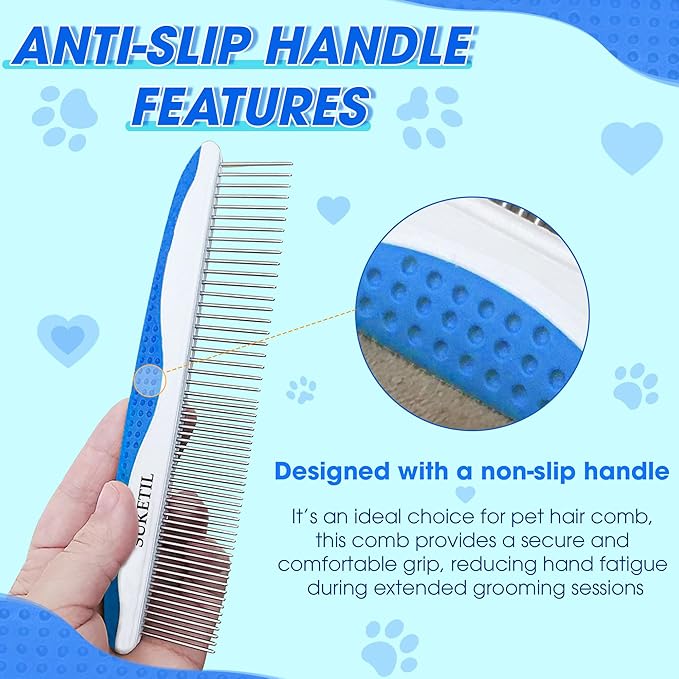 - ERGONOMIC NO-SLIP HANDLE: Designed with a non-slip handle, this comb provides a secure and comfortable grip, reducing hand fatigue during extended grooming sessions. It's an ideal choice for pet hair comb, making the process easier and more efficient