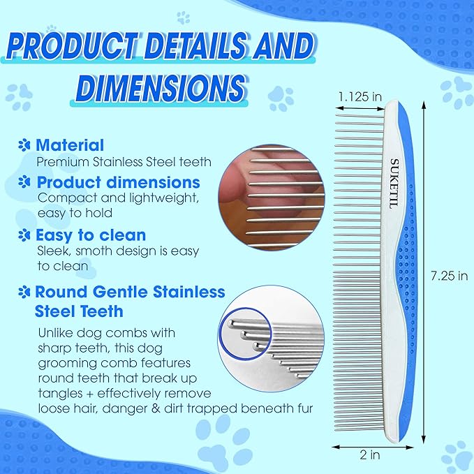 - EFFECTIVE AND SAFE: The comb teeth are designed to effectively remove loose hair, dirt, and tangles without causing discomfort. It serves as both a shedding comb for dog hair comb and a matted fur remover for cats, ensuring safe and gentle grooming sessions for pets with sensitive skin.