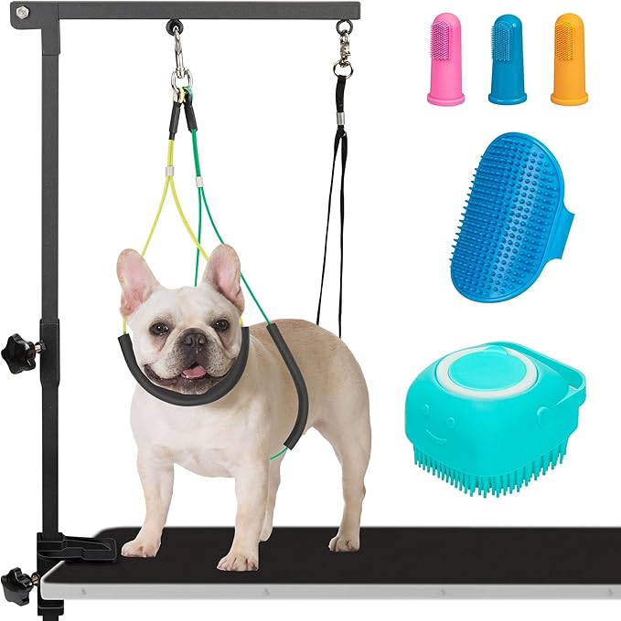 Dog Grooming Arm with 5pcs Pet Bath Brush - 35" Pet Grooming Table Arm with Adjustable No Sit Haunch Holders, Dog Grooming Stand with Loop Noose - Ideal for Small & Medium Dogs