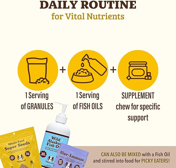 - 60 NUTRIENTS, ONE SOLUTION: Ensure your dog’s diet is as natural as possible with Super Seeds Granules. Unlike synthetic options, our dog multivitamin uses real superfoods like flaxseeds and pumpkin seeds to deliver over 60 vital nutrients. This holistic dog nutrition approach supports everything from skin and coat health to immune function, making it a smart choice for complete canine wellness.