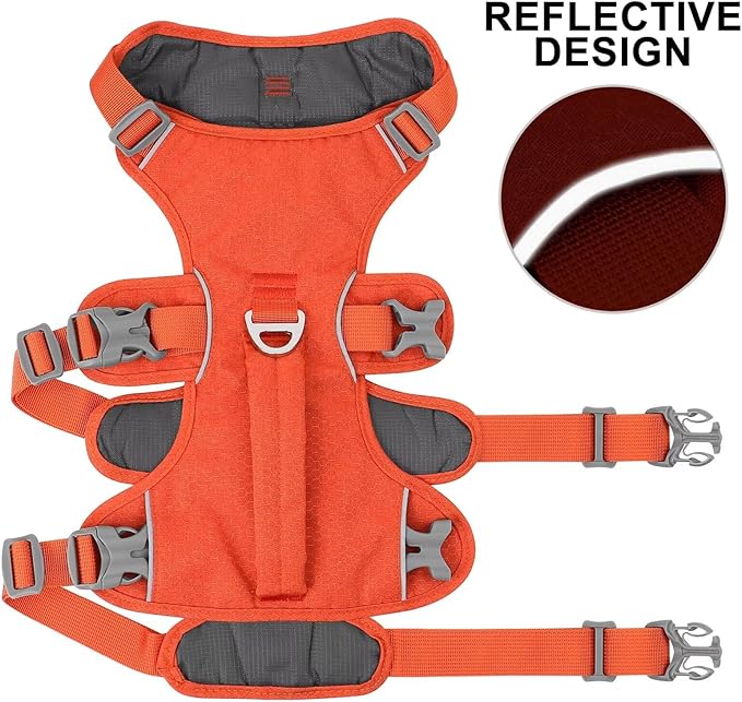 - Multi-Use Secure Harness - Three colors of the stylish dog harness are available:black,green and orange,suitable for both girl/boy dogs.The escape-proof dog harness is the perfect gear for your dog's daily use such as walking, running, hiking, traning, traveling or other outdoor activities.