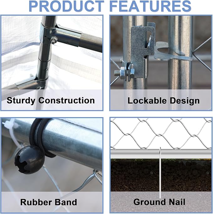 - 【Secure Lockable Door】The roofed outdoor dog kennel includes a lockable door, providing an extra layer of security to keep your pet safe from potential predators and outdoor dangers. Proper installation of covered outdoor dog kennels is emphasized and reminded to tighten the fence during installation to ensure strength and eliminate gaps.