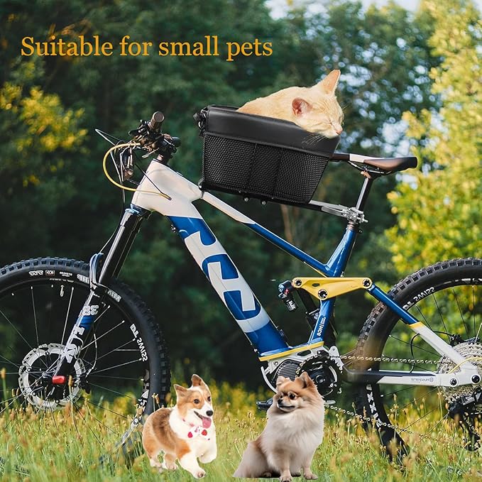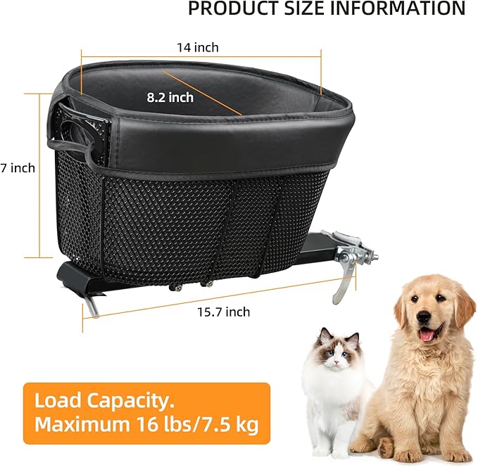 - Ideal For Small Pets & Mountain Bike: The dog bike carrier is expertly designed for utmost comfort of small pets. It's the perfect for small dogs, cats, and puppies weighing up to 16 pounds. Tailored for road and mountain bike, this dog basket ensures secure fit for your pet's outdoor adventures.