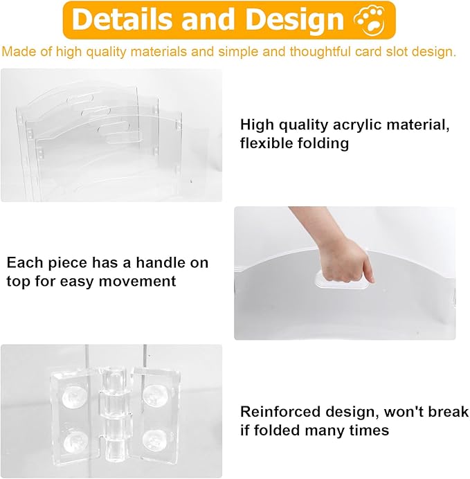 - 【Safe and Stable】Acrylic fence has high impact resistance, pets play collision will not be easily damaged or broken, can be used for a long time. Each side of the fence is smooth and can effectively prevent pets from climbing. Also unlike traditional iron fences, this dog gate prevents your pet's teeth or claws from getting stuck, creating a safe and comfortable environment for your puppy, cat, or bunny.