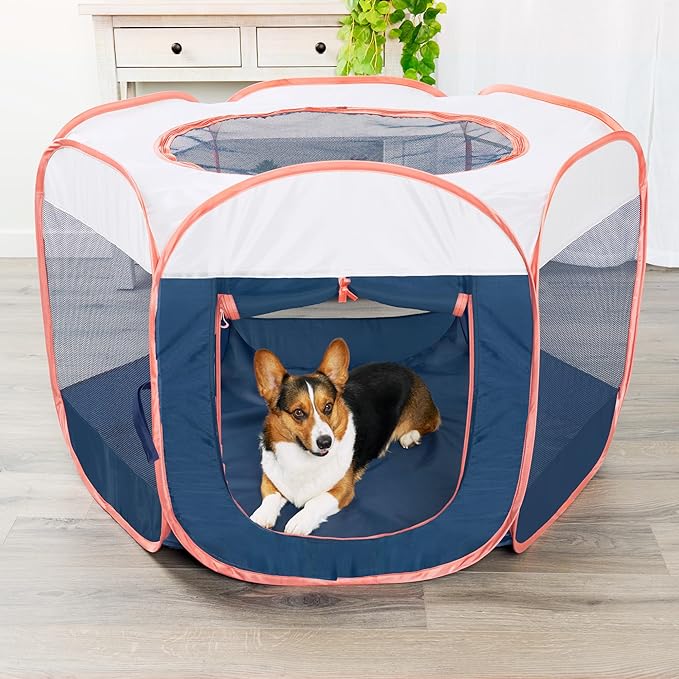 Furhaven Pop Up Playpen Pet Tent Playground - Navy, Large