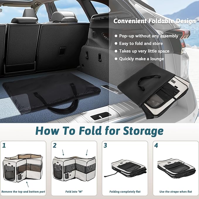 - 【Convenience and Ease of Use】The PETSFIT dog playpen requires no assembly and folds flat quickly. It features a replaceable leakproof mat and a top mesh connected by zippers for easy cleaning. Lightweight and easy to store, it's perfect for travel and everyday use.